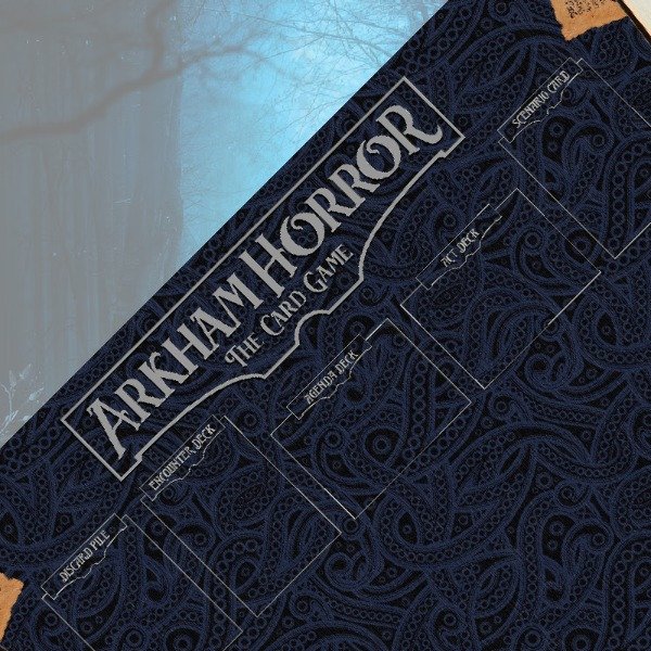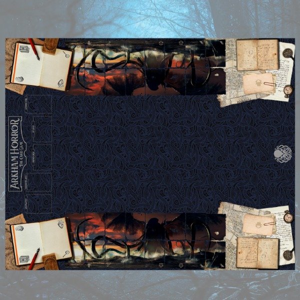 Con la disposición de las cartas, este tapete brinda el área de juego principal. Es un excelente complemento no solo porque mejora la experiencia de un gran juego como Arkham Horror, sino también porque su área central neutra —con finos detalles de los tentáculos del Kraken— permite jugar cualquier tipo de juego.